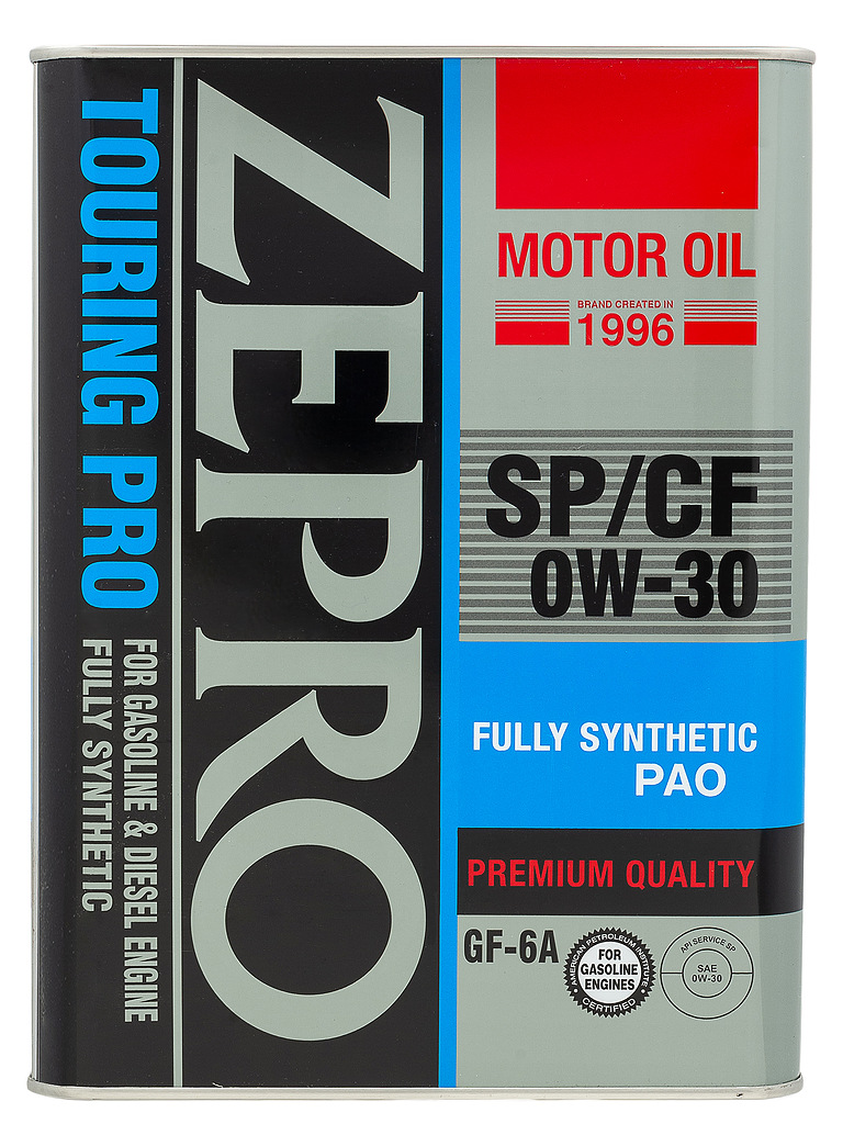 Zepro Touring Pro 0W-30 SP/CF – высококачественное универсальное синтетическое моторное масло для современных четерехтактных двигателей, произведенное на основе смеси синтетического базового масла и полиальфаолефинов (ПАО компонента). Благодаря такому сочетанию, данный продукт обеспечивает выдающуюся защиту двигателя от износа и отложений. Данное масло характеризуется высокой топливной экономичностью и стабильностью вязкости в широком диапазоне рабочих температур.