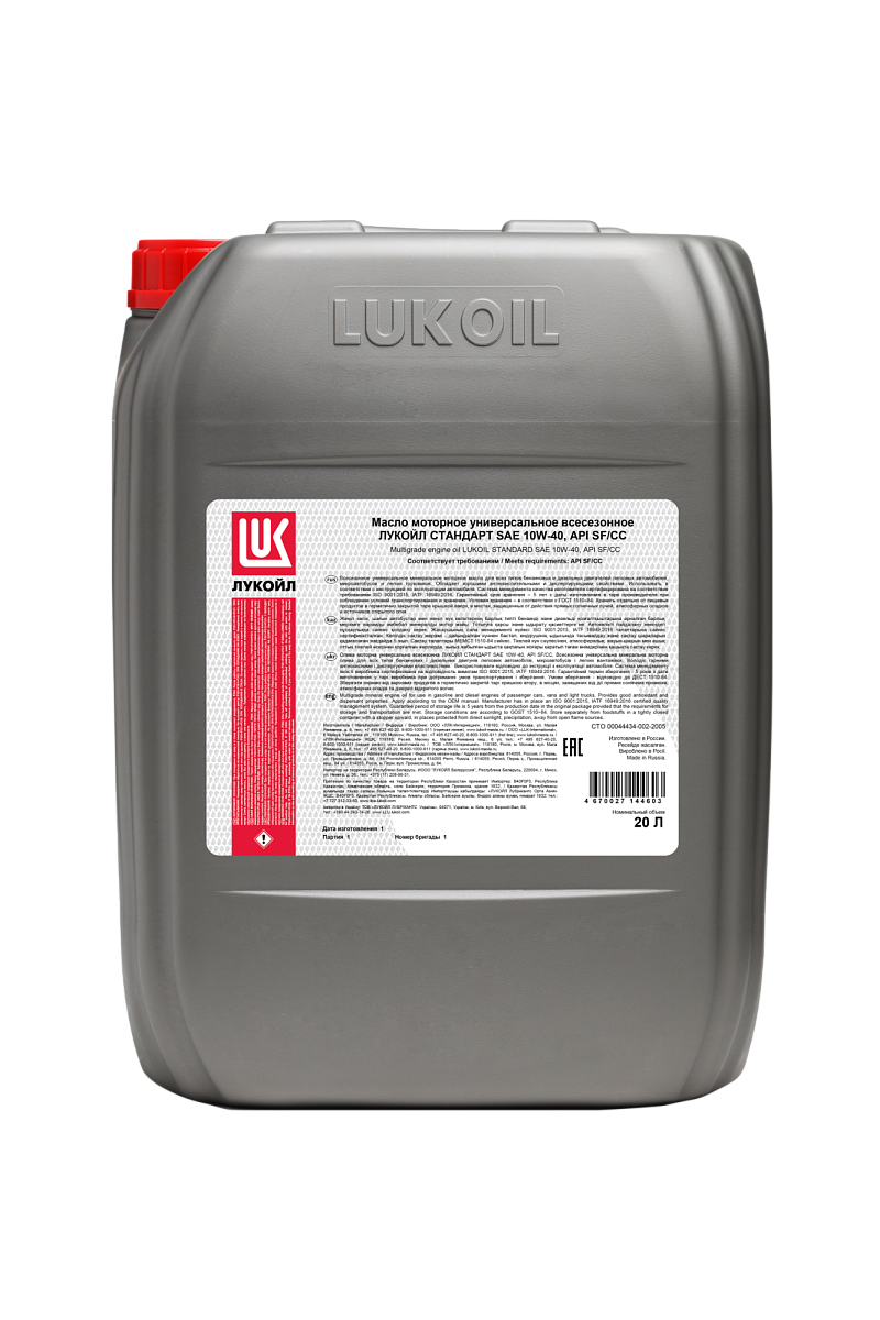 Лукойл STANDARD 10W-40 - Минеральное моторное масло эконом класса. Масло рекомендуется для использования в двигателях с большим пробегом, для которых характерен повышенный расход масла.