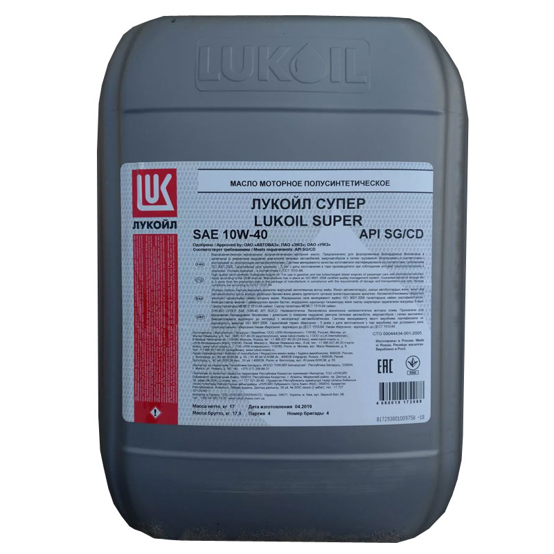 Лукойл SUPER 10W-40 - Полусинтетическое всесезонное моторное масло для бензиновых и дизельных автомобилей. В состав масла входят высокоочищенные минеральные и синтетические базовые масла, обеспечивающие надёжную эксплуатацию двигателя в широком диапазоне нагрузок и температур.