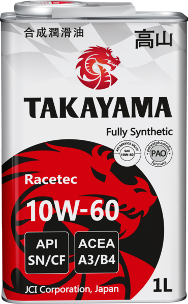 Масло моторное синтетическое Такаяма Racing SAE 10W-60 API SN-CF ACEA A3-B4. Продукт разработан специально для увеличения срока службы двигателей спортивных автомобилей.