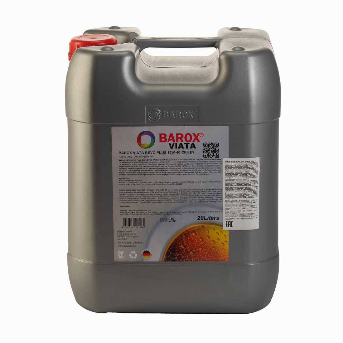 Моторное масло BAROX VIATA Revo Plus 15W-40 CK-4 E7/E9 мин. 20 л. в Сургуте