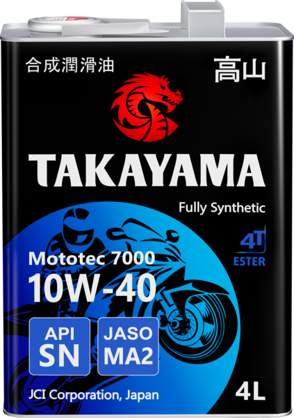 TAKAYAMA Mototec 7000 4T 10W-40 API SN JASO MA-2 - Современное синтетическое высокотехнологичное моторное масло. Применяется для двигателей SUZUKI, YAMAHA, KAWASAKI, требующих масла с классом вязкости SAE 10W-40