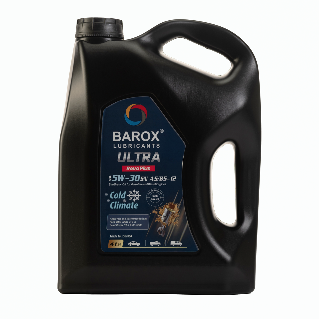 BAROX ULTRA REVO PLUS 5W-30 API SN, AСEA A5/B5-12 - Высокоэффективное маловязкое моторное масло, созданное на основе синтетической технологии. Прибывайте в пункт назначения быстрее и безопаснее с максимальной производительностью двигателя и запасом мощности. Превосходит самые высокие требования к испытаниям, предъявляемые известными производителями. Специально разработано для холодного климата.