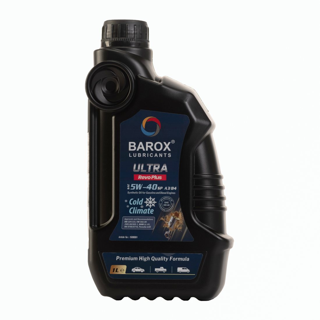 BAROX ULTRA REVO PLUS 5W-40 API SP, AСEA A3/B4– Полностью синтетическое моторное масло. Создано на основе синтетических базовых масел и премиального пакета присадок. Предназначено для использования в двигателях с инжекторной системой подачи топлива, использующих турбонаддув, или нагнетатель с механическим приводом "суперчарджер". Подходит как для стандартных, так и для экстремальных условий эксплуатации. Повышает эффективность работы двигателя и продлевает срок его службы. Превосходит самые высокие требования к испытаниям.