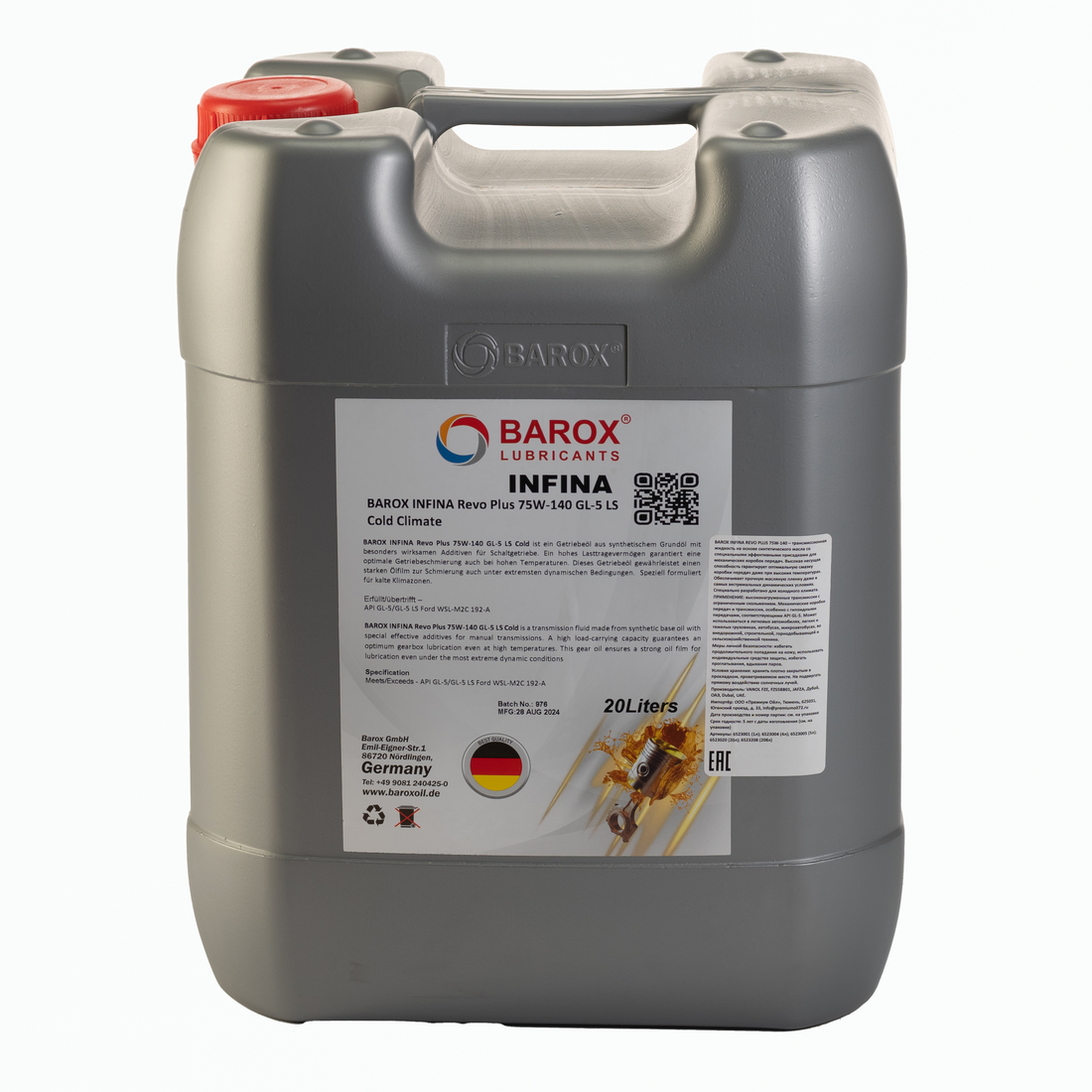BAROX INFINA REVO PLUS 75W-140 API GL-5/GL-5 LS — Трансмиссионная жидкость на основе синтетического масла со специальными эффективными присадками для механических коробок передач и ведущих мостов. Высокая несущая способность гарантирует оптимальную смазку коробки передач даже при высоких температурах. Обеспечивает прочную масляную пленку даже в самых экстремальных динамических условиях.
