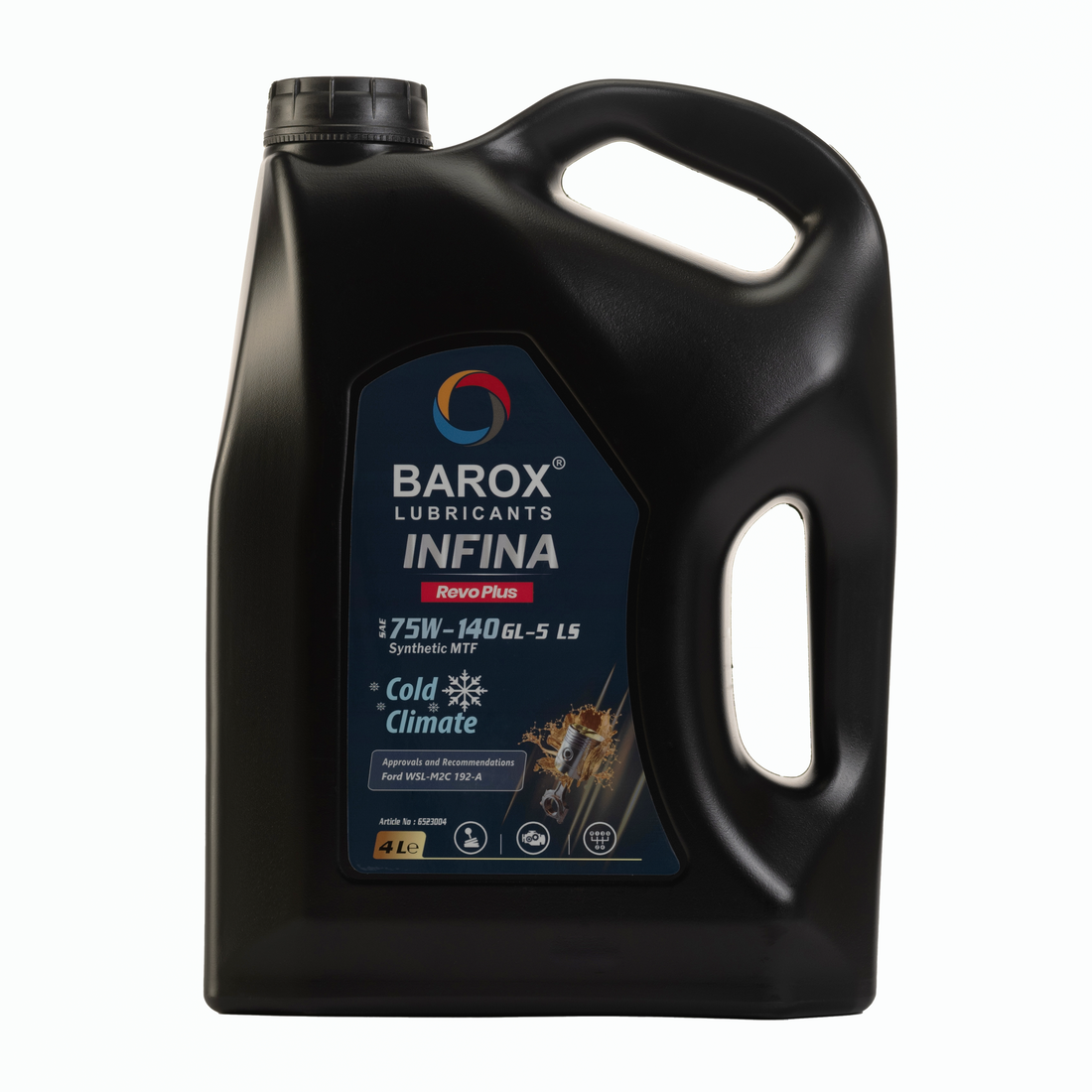 BAROX INFINA Revo Plus SAE 75W140 API GL-5/GL-5 LS — Трансмиссионная жидкость на основе синтетического масла со специальными эффективными присадками для механических коробок передач и ведущих мостов. Высокая несущая способность гарантирует оптимальную смазку коробки передач даже при высоких температурах. Обеспечивает прочную масляную пленку даже в самых экстремальных динамических условиях.