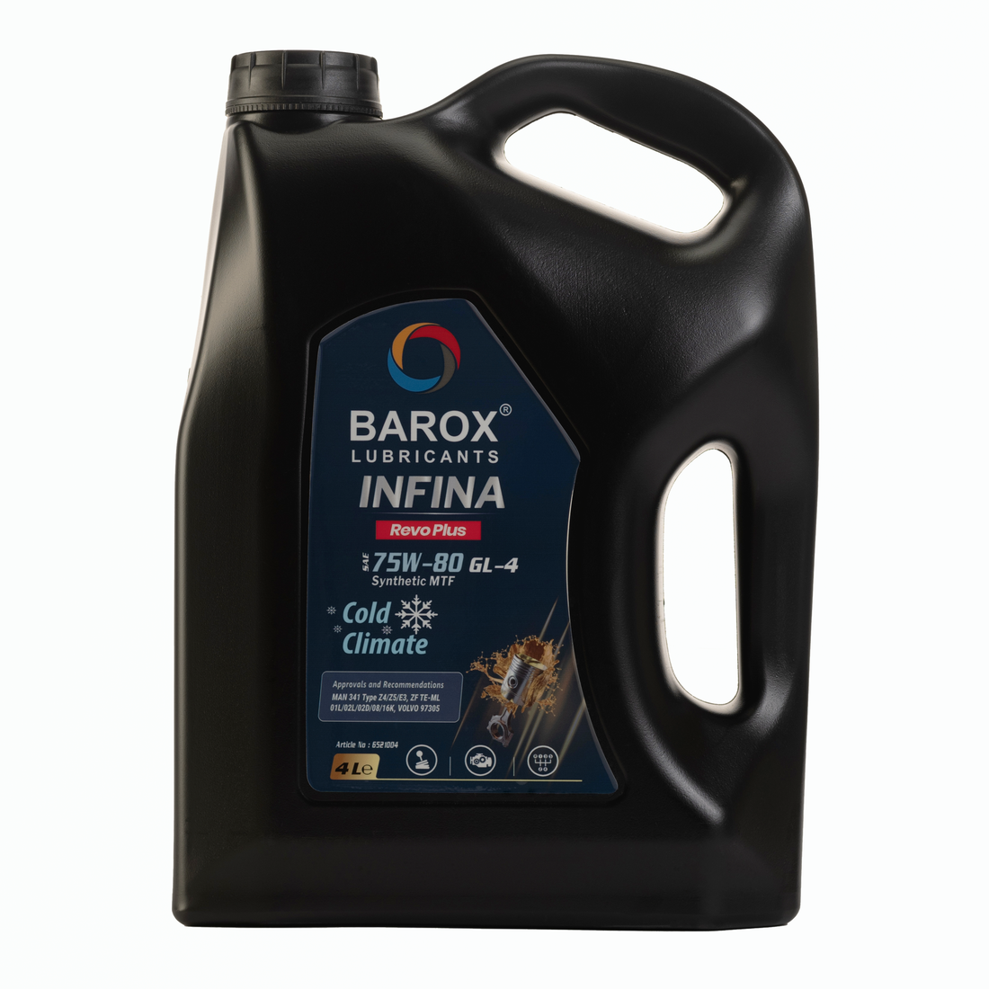 BAROX INFINA REVO PLUS 75W-80 API GL-4 — Полностью синтетическое трансмиссионное масло с чрезвычайно высоким запасом прочности. Превосходные эксплуатационные характеристики в холодном состоянии и стабильность к окислению. Обеспечивает безупречную работу агрегатов даже в самых сложных условиях и при больших перепадах температур. Минимизирует износ. Выдающиеся температурные характеристики вязкости. Обеспечивает длительные интервалы замены масла.