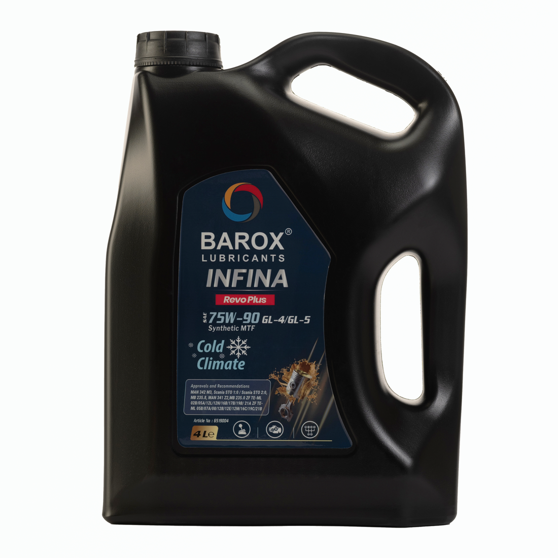 BAROX INFINA REVO PLUS 75W-90 API GL-4/GL-5 — Полностью синтетическое трансмиссионное масло с чрезвычайно высоким запасом прочности. Превосходные эксплуатационные характеристики в холодном состоянии и стабильность к окислению. Обеспечивает безупречную работу агрегатов даже в самых сложных условиях и при больших перепадах температур. Минимизирует износ. Выдающиеся температурные характеристики вязкости. Обеспечивает длительные интервалы замены масла. Специально разработано для холодного климата.