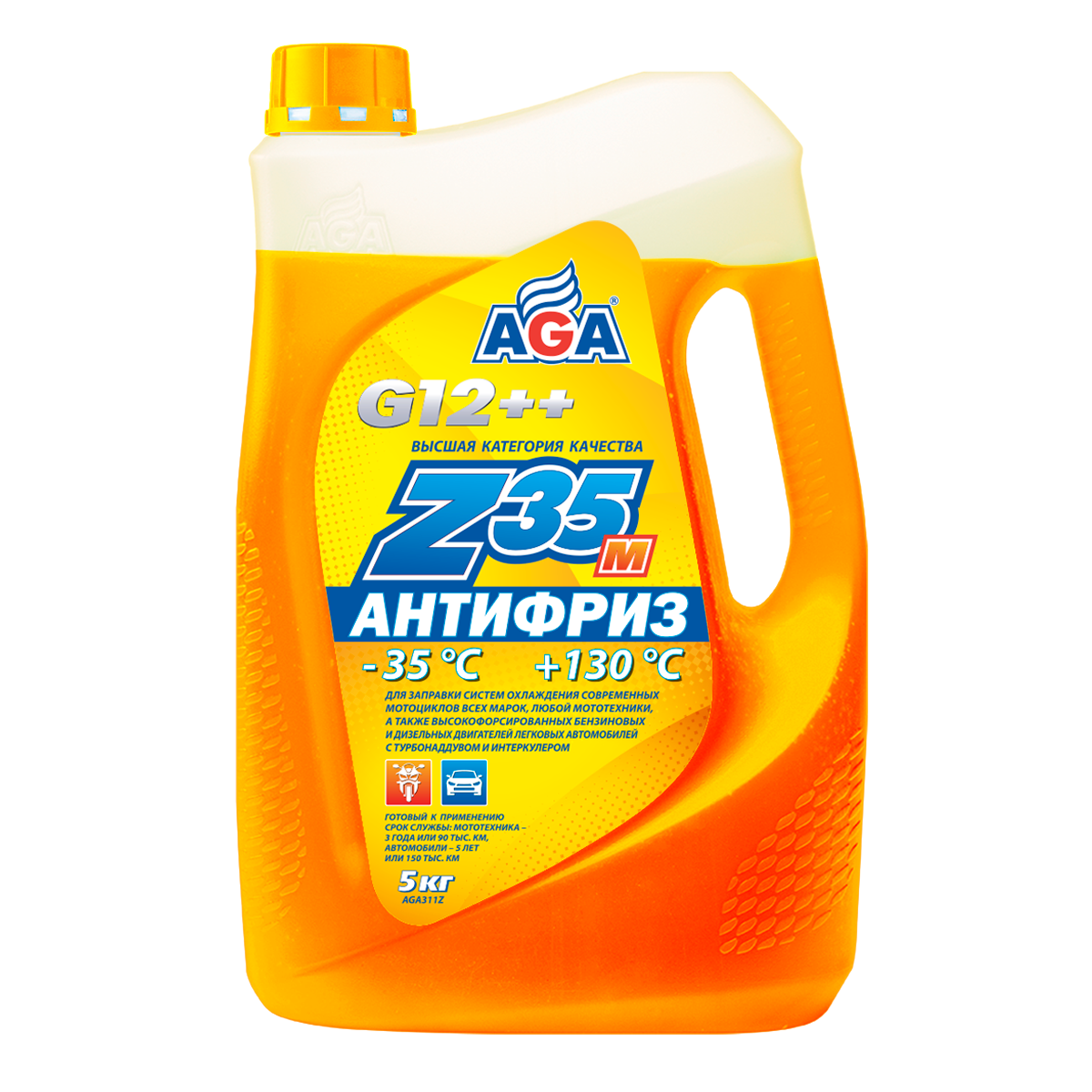 Антифриз AGA-Z35м – это универсальная охлаждающая жидкость высшей категории качества. Предназнаячен для заправки систем охлаждения современных мотоциклов, мототехники всех видов, а также высокофорсированных бензиновых и дизельных двигателей легковых автомобилей всех марок с турбонаддувом и интеркулером.