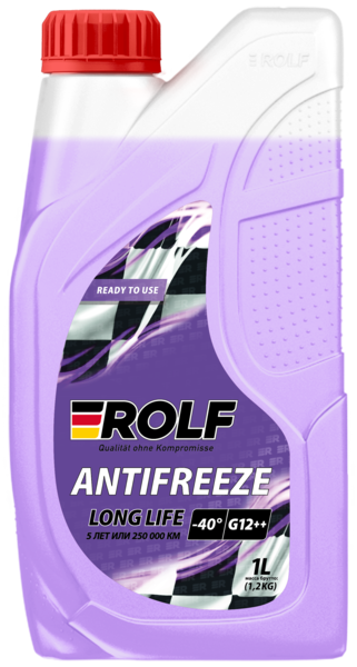 Rolf Antifreeze G12++ violet -40 - Предназначена для применения в системах охлаждения большинства современных бензиновых и дизельных двигателей легкового и грузового автотранспорта, автобусов и внедорожной техники. Производится на основе этиленгликоля и пакета присадок, содержащего силикаты и органические ингибиторы коррозии (Si-OAT).