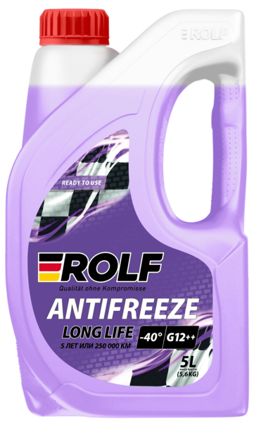 Rolf Antifreeze G12++ violet -40 - Предназначена для применения в системах охлаждения большинства современных бензиновых и дизельных двигателей легкового и грузового автотранспорта, автобусов и внедорожной техники. Производится на основе этиленгликоля и пакета присадок, содержащего силикаты и органические ингибиторы коррозии (Si-OAT).