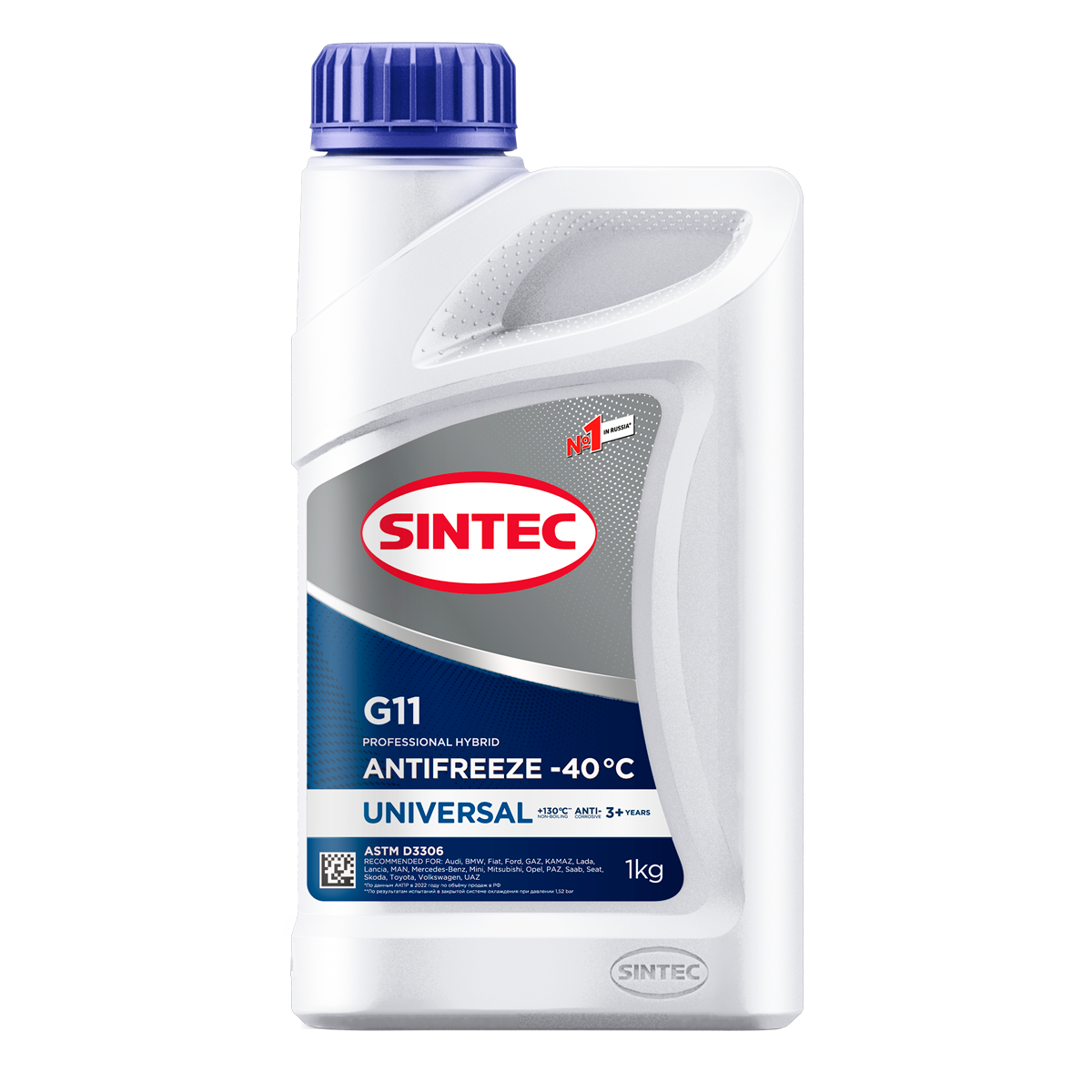 Sintec Antifreeze Universal G11 blue -40 – готовая к применению высококачественная низкозамерзающая охлаждающая жидкость на основе моноэтиленгликоля и пакета присадок. Обеспечивает правильный тепловой режим эксплуатации двигателя, предотвращает появление коррозии и отложений в системе охлаждения. Обладает эффективными смазывающими свойствами, продлевающими ресурс помпы системы охлаждения. Не повреждает шланги, прокладки и уплотнения системы охлаждения.