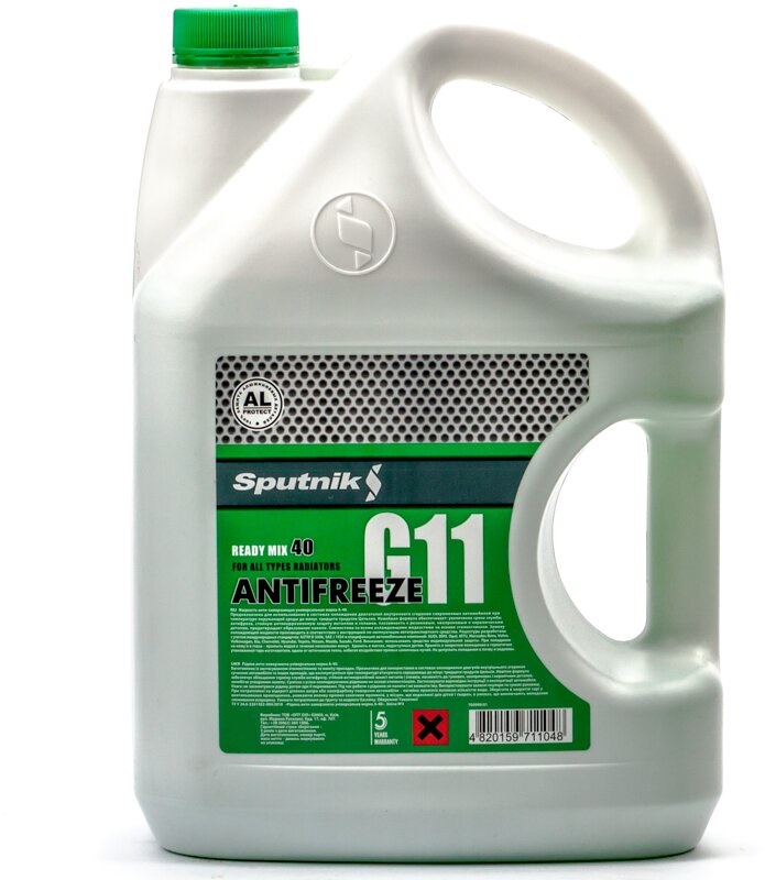 Готовые к применению Антифриз SPUTNIK G11 -40 зелёный. В состав антифриза входит флуоресцентный краситель, использование которого позволяет быстро определить места протечки. Для этого достаточно просветить предполагаемое место ультрафиолетовой лампой.