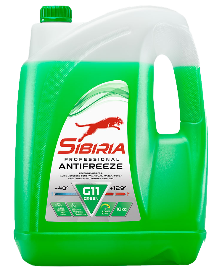 Антифриз SIBIRIA G11 Green - Жидкость охлаждающая низкозамерзающая/ В охлаждающей системе используется в рабочем диапазоне температур от -40 °С до +129 °С.