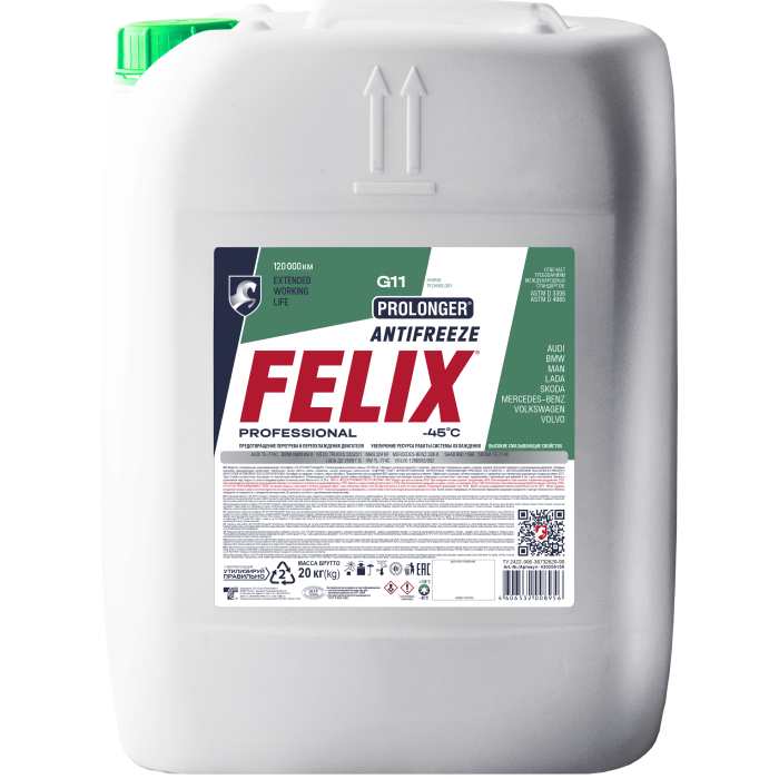 Антифриз FELIX® PROLONGER® представляет собой жидкость охлаждающую низкозамерзающую на основе этиленгликоля и специально очищенной воды, не содержащую аминов, фосфатов и боратов. Разработан по гибридной технологии, содержит в себе набор силикатных присадок.