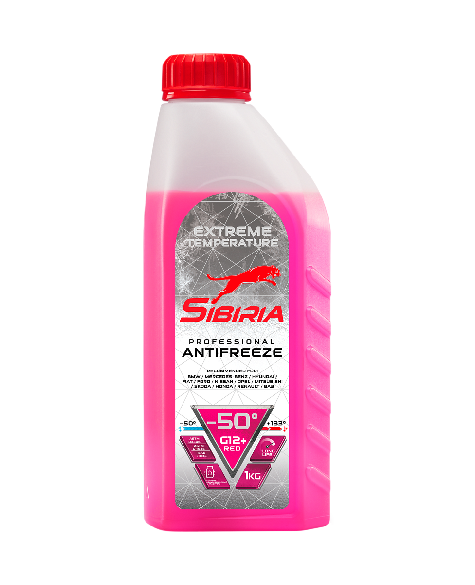 Жидкость охлаждающая низкозамерзающая «Antifreeze Sibiria -50 G12+». Является карбоксилатным антифризом, изготавливаемым по Технологии Органических Кислот (ОАТ), и относится к классу «интеллектуальных антифризов» с увеличенным сроком эксплуатации.