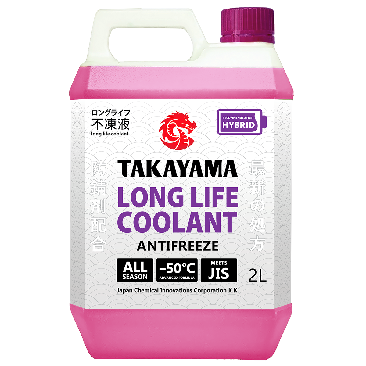 Лобридная жидкость охлаждающая низкозамерзающая «TAKAYAMA LONG LIFE COOLANT HYBRID -50» на основе высокоочищенного этиленгликоля и специального пакета присадок, состоящего в том числе из ингибиторов коррозии на основе органических кислот и фосфатов (P-OAT — Phosphated -Organic Acid Technology). Не содержит в составе силикатов, нитратов, боратов и аминов. Температура застывания до -50 °C. Температура кипения 111 °С. Жидкость полностью готовая к применению.