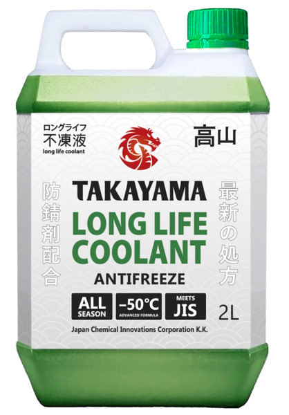Лобридная жидкость охлаждающая низкозамерзающая «TAKAYAMA LONG LIFE COOLANT GREEN -50» на основе высокоочищенного этиленгликоля и специального пакета присадок, состоящего в том числе из ингибиторов коррозии на основе органических кислот и фосфатов (P-OAT — Phosphated - Organic Acid Technology). Не содержит в составе силикатов, нитратов, боратов и аминов.