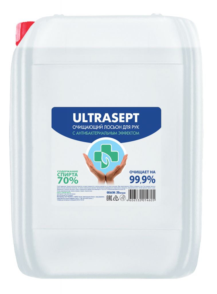 Антисептики ULTRASEPT от крупнейшего Российского производителя! Уничтожает 99,9% известных вирусов благодаря 70% массовой доле изопропилового спирта* Быстрый и эффективный в действии, обеспечивает защиту и чистоту рук. Рекомендуется использовать для дезинфекции различных поверхностей, в том числе смартфонов, ключей, дверных ручек и т.д.
