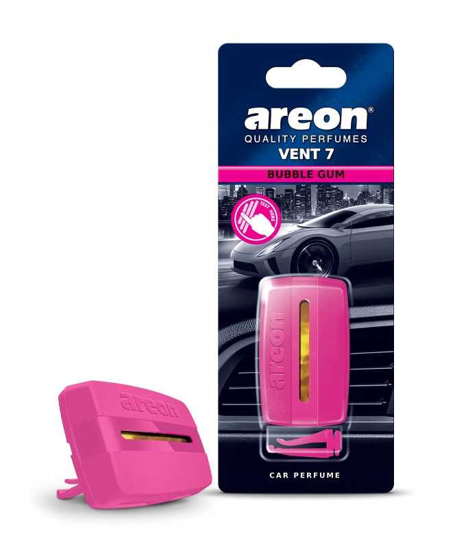 Ароматизатор Areon VENT 7 Bubble Gum - был создан, чтобы напомнить о сладком и фруктовом характере культовой жевательной резинки. Одно дуновение этого неповторимого аромата вернет Вас в сокровенные детские воспоминания.