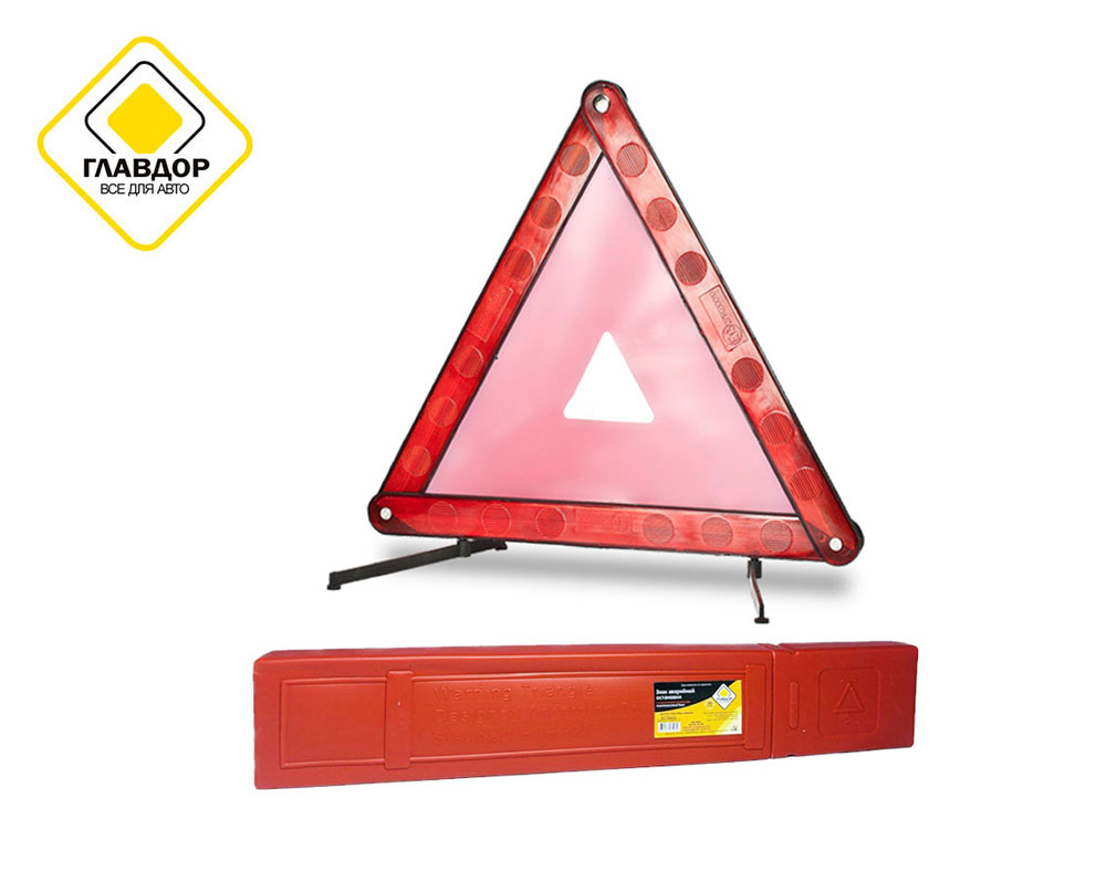 Знак аварийной остановки "Главдор" выполнен из пластика, оснащен пластиковой вставкой (оракалом). Треугольный, с отражением.