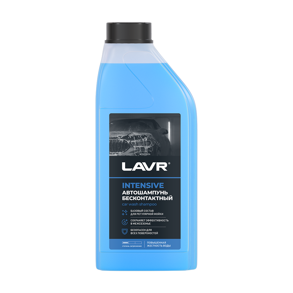 Автошампунь для бесконтактной мойки Intensive LAVR – концентрированное средство для очистки внешних поверхностей автомобилей, мотоциклов, велосипедов и т.д. Состав с высоким пенообразованием размягчает и отслаивает частицы грязи, которые затем легко смываются водой. Безопасен для лакокрасочного и других покрытий.