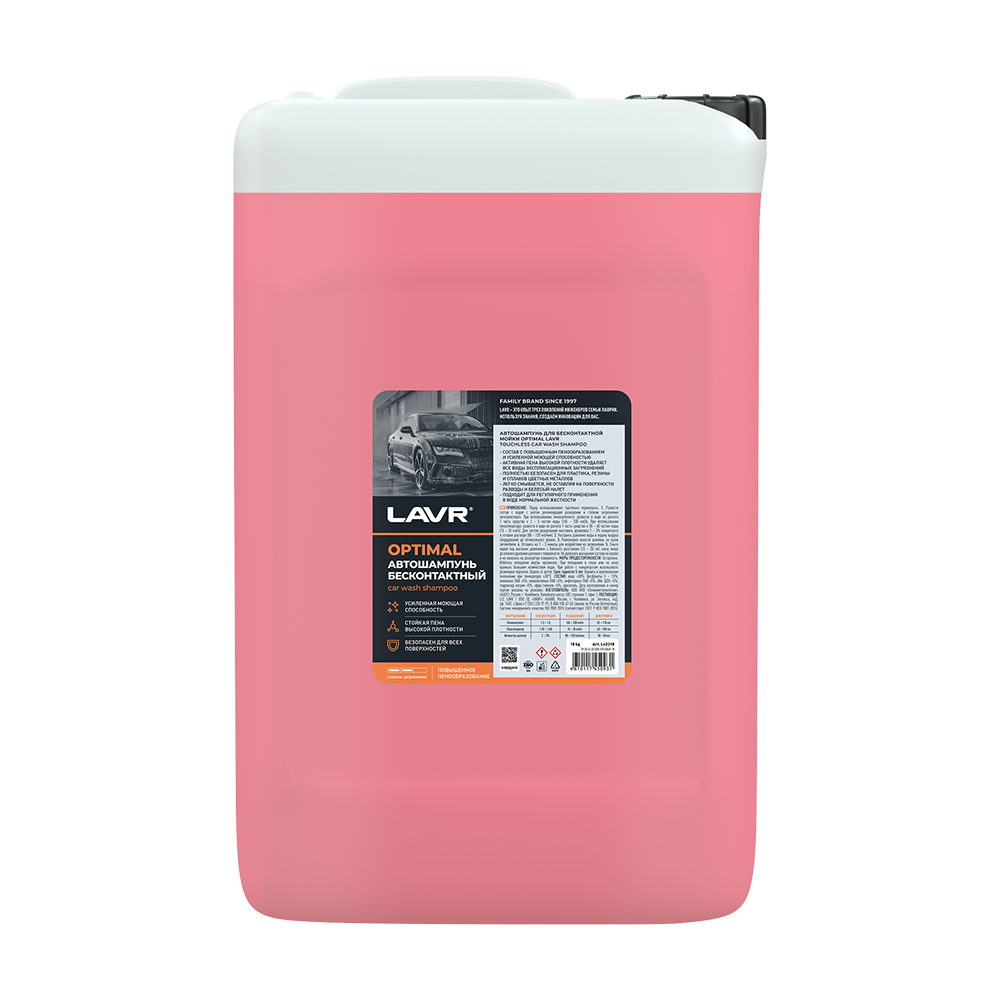 Автошампунь для бесконтактной мойки Optimal LAVR – профессиональный концентрированный состав для очистки внешних поверхностей автомобилей, мотоциклов, велосипедов и т.д. Обладает повышенной моющей способностью. Отлично подходит для регулярного применения. Формула на основе сырья растительного происхождения эффективна против всех видов загрязнений и безопасна для поверхностей кузова.