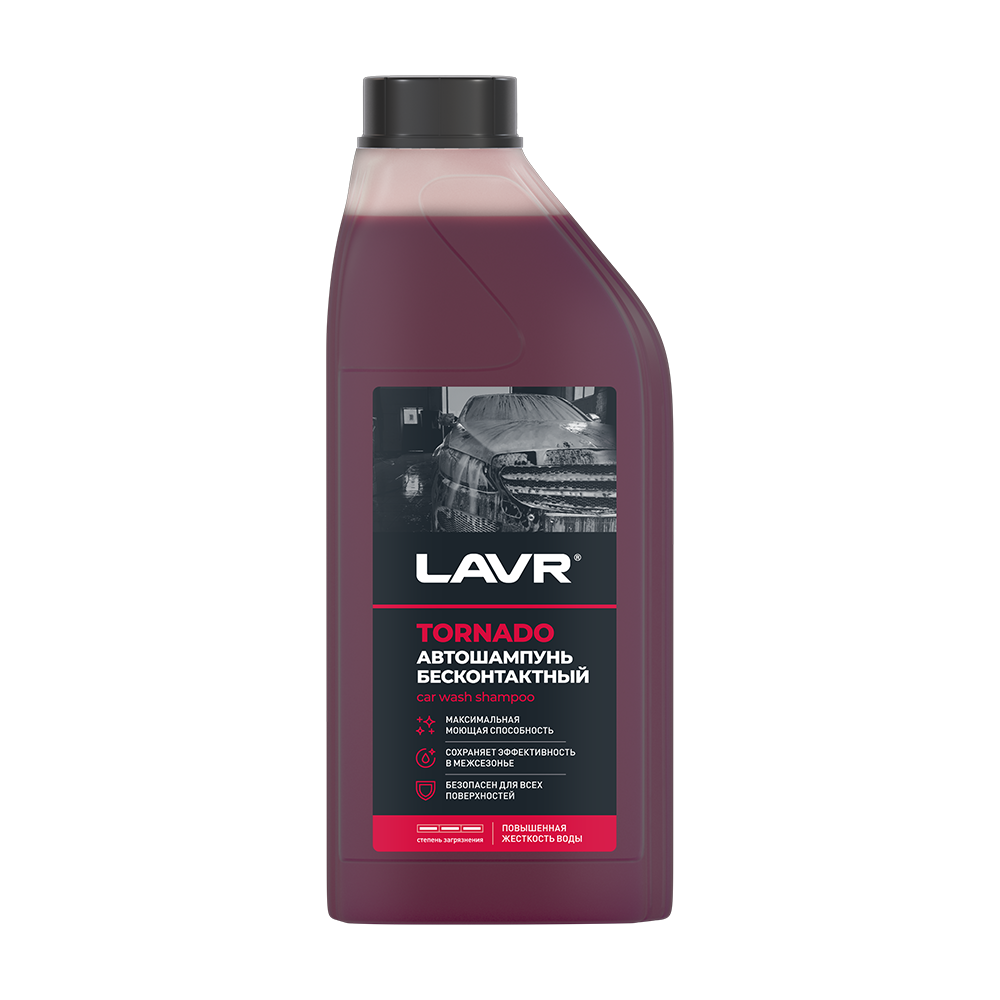 Автошампунь для бесконтактной мойки TORNАDO LAVR – профессиональный высококонцентрированный состав для очистки внешних поверхностей автомобилей, мотоциклов, велосипедов и т.д. Средство с усиленной моющей способностью для жесткой воды. Сохраняет высокие моющие свойства даже при минимальных концентрациях разведения. Формула безопасна для поверхностей кузова.