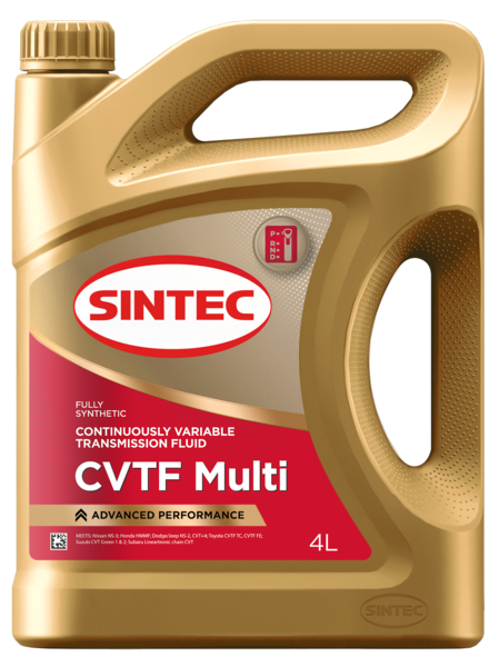 SINTEC CVTF Multi - Предназначена для вариативных коробок передач с длительным сроком службы. Обеспечивает комплексную защиту от преждевременного износа деталей гидроблока управления и приводного (клиноременного или клиноцепного) механизма. Обладает высокой стойкостью к окислению, обеспечивая стабильную вязкость масла в условиях высоких контактных нагрузок и температур. Предназначена для бесступенчатых вариаторных трансмиссий (CVT), как цепного так и ременного типа. Продукт соответствует требованиям американских, европейских, азиатских автопроизводителей, требующих применения жидкости CVT.