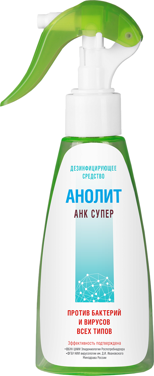 Анолит АНК Супер - слабоминерализованный водный раствор хлоркислородных и гидропероксидных оксидантов (хлорноватистая кислота, диоксид хлора, озон, активные формы хлора и кислорода) в метастабильном (активированном) состоянии (концентрация 0,05%), рН 5,0-6,5. Сложный постоянно меняющийся состав средства не позволяет микроорганизмам адаптироваться к нему и выработать устойчивость.