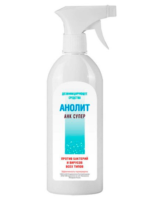 Анолит АНК Супер - слабоминерализованный водный раствор хлоркислородных и гидропероксидных оксидантов (хлорноватистая кислота, диоксид хлора, озон, активные формы хлора и кислорода) в метастабильном (активированном) состоянии (концентрация 0,05%), рН 5,0-6,5. Сложный постоянно меняющийся состав средства не позволяет микроорганизмам адаптироваться к нему и выработать устойчивость.