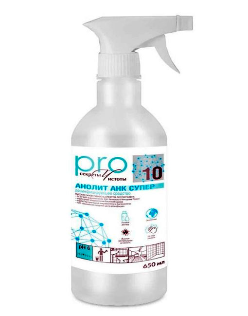 Анолит АНК Супер - слабоминерализованный водный раствор хлоркислородных и гидропероксидных оксидантов (хлорноватистая кислота, диоксид хлора, озон, активные формы хлора и кислорода) в метастабильном (активированном) состоянии (концентрация 0,05%), рН 5,0-6,5. Сложный постоянно меняющийся состав средства не позволяет микроорганизмам адаптироваться к нему и выработать устойчивость.