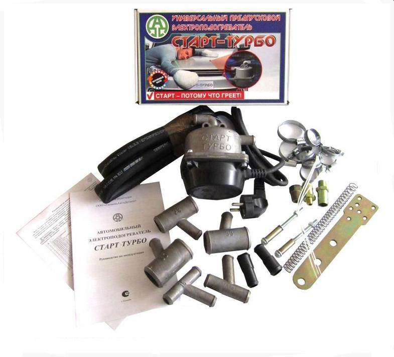 КМУ «Универсал» №2 – Электроподогреватель "Старт-Турбо" с встроенным центробежным насосом. КМУ с расширенным содержимым комплектующих, для установки в систему охлаждения ДВС не только в разрез обратки печки, но и по другим схемам привязок. (Комплект с широкими возможностями применяемости, для монтажа по различным схемам врезок в систему охлаждения ДВС).