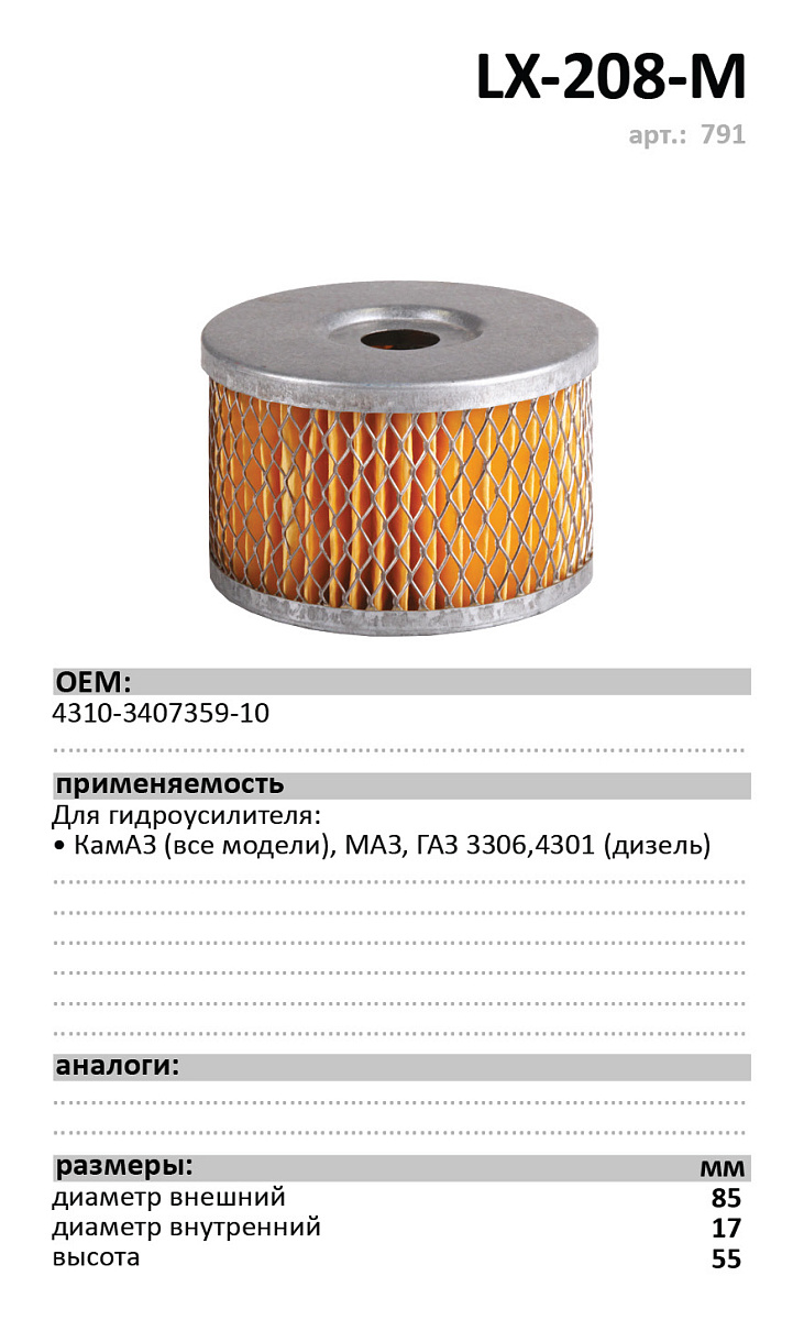 Фильтр масляный, вставка LUXE LX-208-M