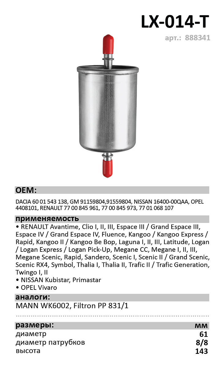 Фильтр топливный LUXE LX-014-Т