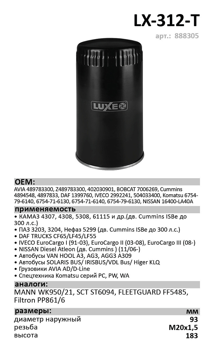 КАМАЗ 4307, 4308, 5308, 61115 и др.(дв. Cummins ISBe до 300 л.с.)