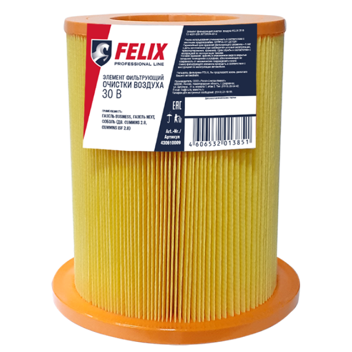 Фильтр воздушный FELIX 30 В состоит из фильтровальной бумаги ВФБ-380АБ, пропитанной акриловой смолой ярко-желтого цвета, просечной сетки из стали ОЦ, ППУ оранжевого цвета.