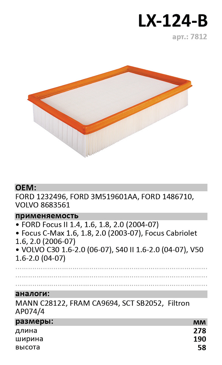 Ford Focus II 1.4-2.0, Duratec, Ford Focus С-MAX 1.6-2.0 2003-2007 гг; Focus Cabriolet 1.6, 2.0 с 2006 г,