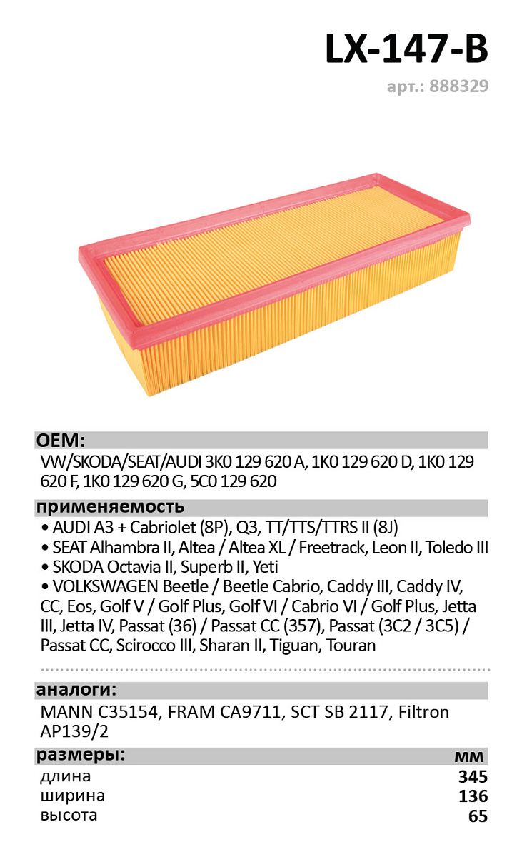VOLKSWAGEN Beetle / Beetle Cabrio, Caddy III, Caddy IV, CC, Eos, Golf V / Golf Plus, Golf VI / Cabrio VI / Golf Plus, Jetta III, Jetta IV, Passat (36) / Passat CC (357), Passat (3C2 / 3C5) / Passat CC, Scirocco III, Sharan II, Tiguan, Touran