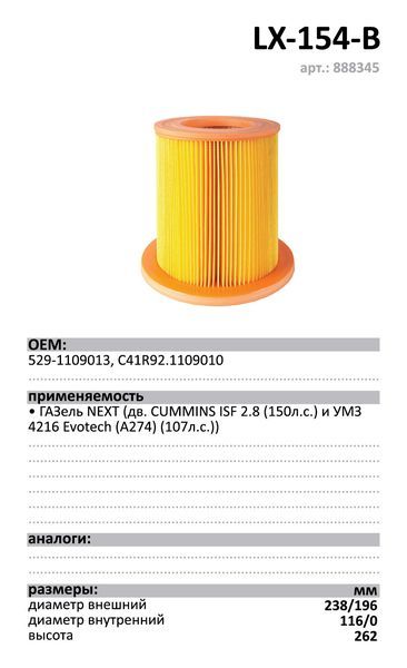 Фильтр воздушный LUXE LX-154-B