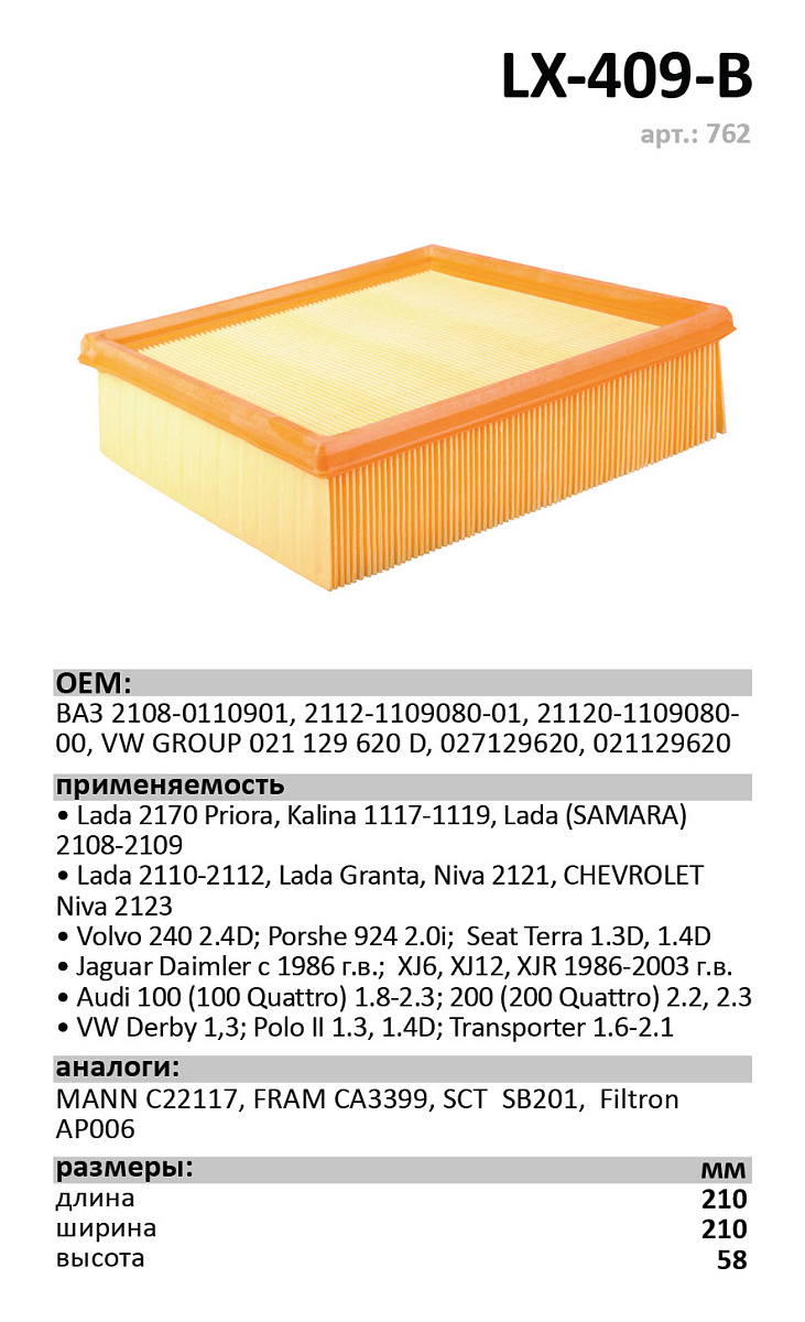 Фильтр воздушный LUXE LX-409-B