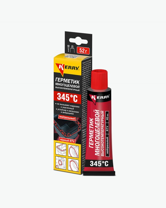 Силиконовый автомобильный герметик KERRY® KR-144-2 применяется для ремонта или формирования прокладок в узлах автомобиля, подверженных воздействию высоких температур, таких как крышка картера/поддон КПП, поддон картера двигателя, корпус термостата, водяная помпа. Может наноситься на штатные прокладки для улучшения их эксплуатационных свойств (не рекомендуется для применения на головке блока цилиндров). Не содержит растворителей и кислот, не вызывает коррозиии, безопасен для кислородных датчиков. Может использоваться для герметизации электрических соединений и датчиков. Характеризуется отличной адгезией к поверхностям из металла, пластика, стекла, резины. Силиконовый атогерметик подходит для герметизации и ремонта автомобильных фар, устраняет течи через уплотнители автомобильных стёкол. Вулканизируется при комнатной температуре (RTV), образует прочную гибкую прокладку. Не растрескивается и не даёт усадку.