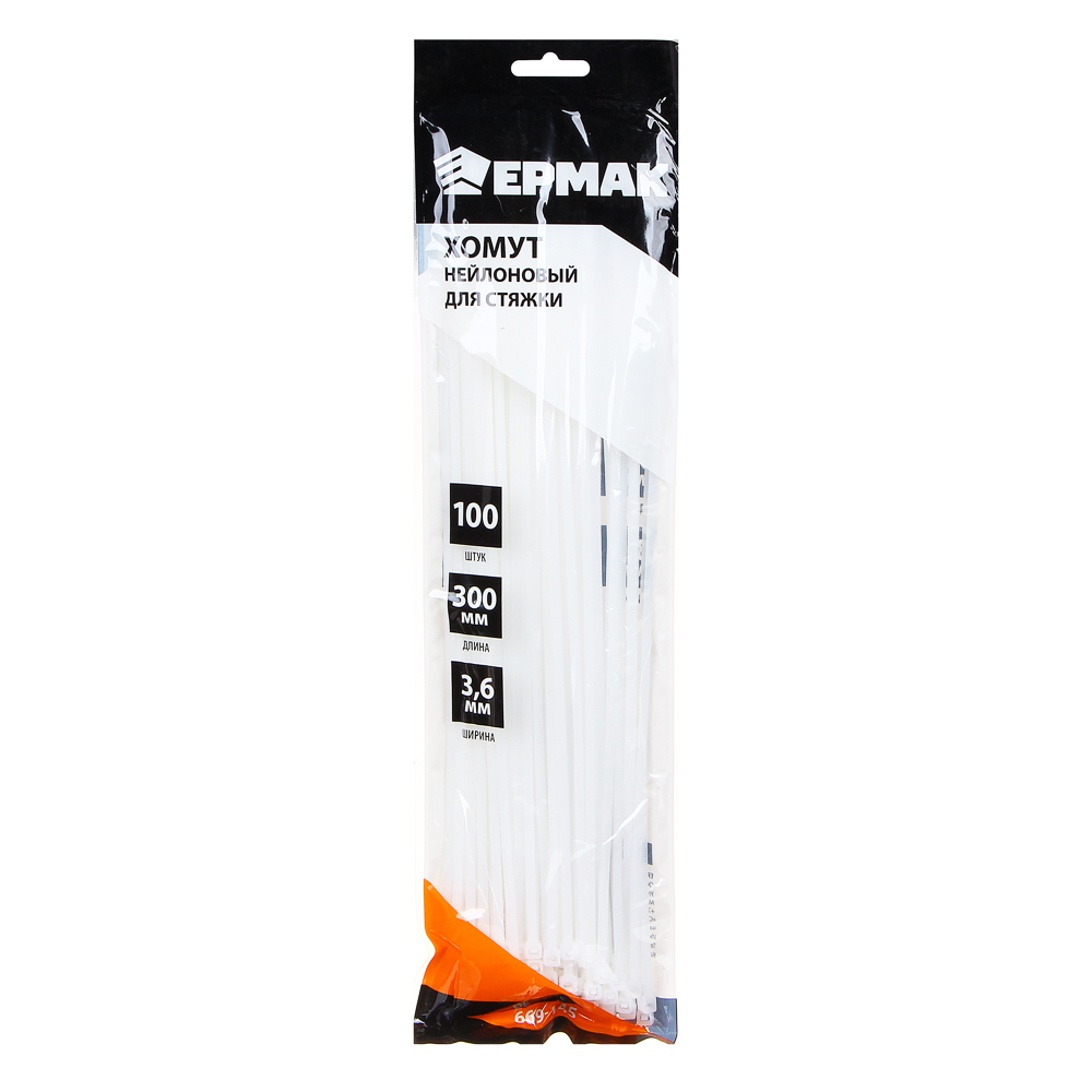 Нейлоновый хомут для стяжки ЕРМАК 3,6х300 мм белого цвета