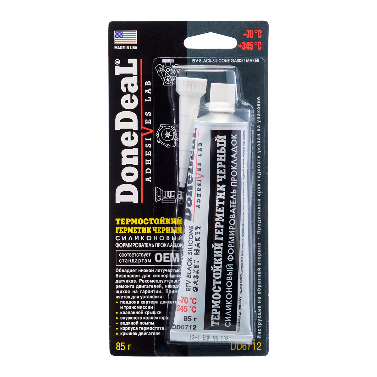 - Устойчив к воздействию автомобильных жидкостей, включая моторные и трансмиссионные масла, ATF, воду, антифриз.