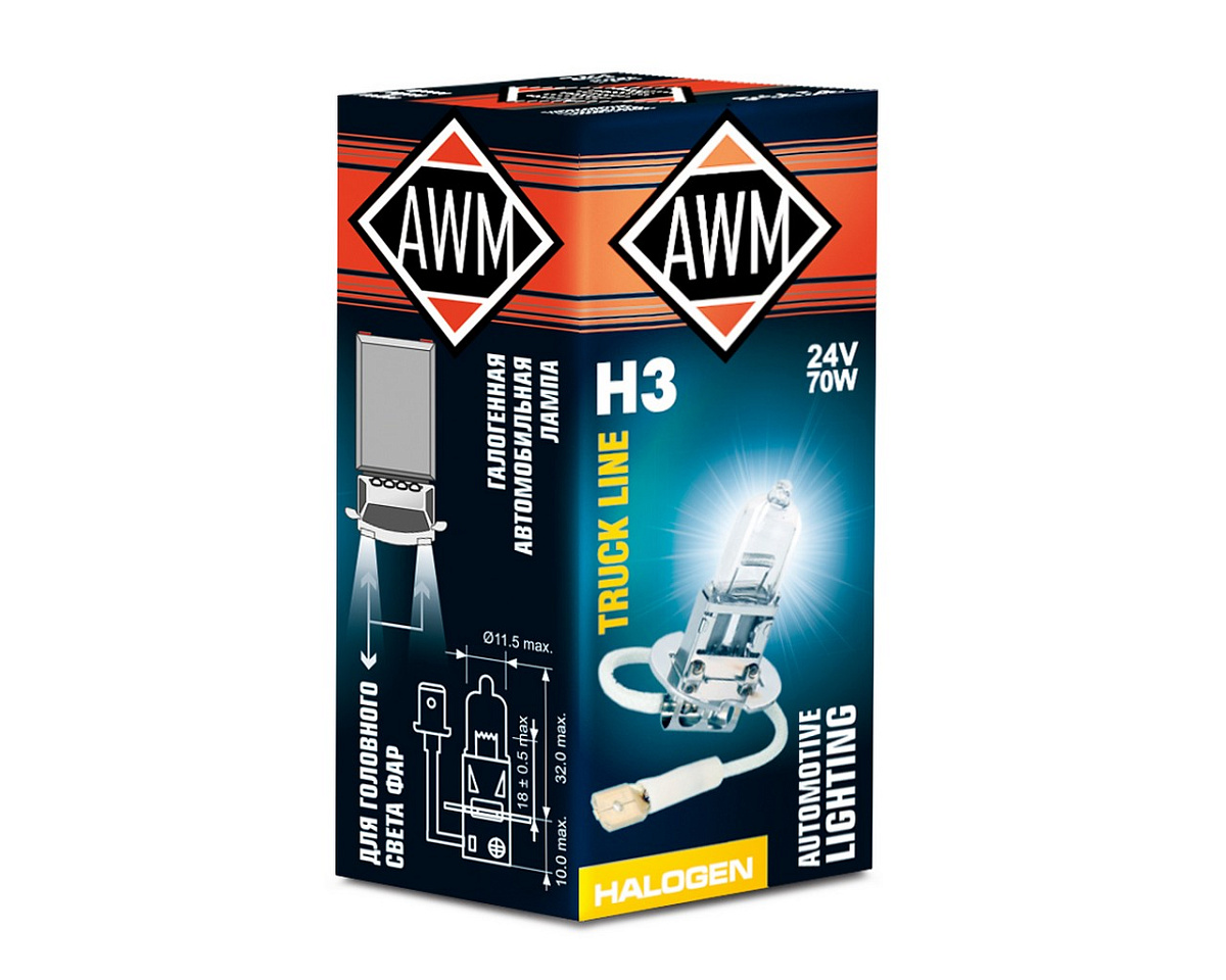 Автомобильные лампы AWM разработаны с использованием современных технологий и изготовлены из высококачественных материалов и комплектующих. В ассортименте представлены самые популярные позиции галогеновых ламп и ламп накаливания.
