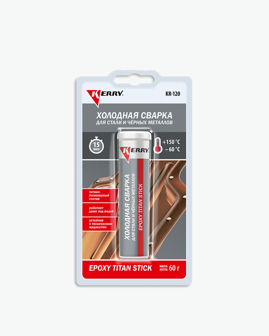 - Металлопластилин титанонаполненный для стали и черных металлов KERRY® KR‑120 позволяет быстро, прочно и герметично отремонтировать повреждённое изделие или склеить необходимые элементы, в том числе испытывающие значительные статические и динамические нагрузки.