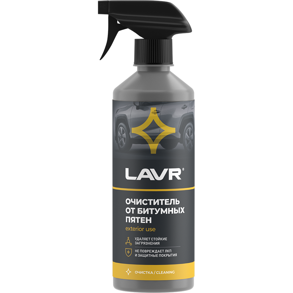 Очиститель от битумных пятен LAVR – эффективное средство для очистки внешних поверхностей автомобиля от битумных загрязнений. Уникальный комплекс активных веществ быстро и безопасно воздействует на сложные и застарелые пятна. Силикон в составе придает дополнительные защитные свойства поверхностям после обработки.