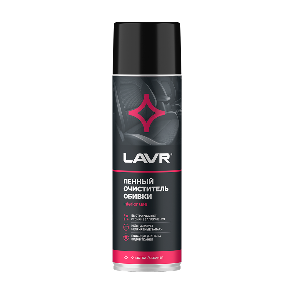 Пенный очиститель обивки LAVR – средство в аэрозольном формате для ухода за тканевой обивкой и коврами в салоне автомобиля, а также в быту. Эффективно справляется с различными типами пятен. Обильная пена быстро и глубоко проникает в структуру отделки из велюра и текстильных материалов, приподнимает и удаляет загрязнения. Безопасен для материалов обивки.
