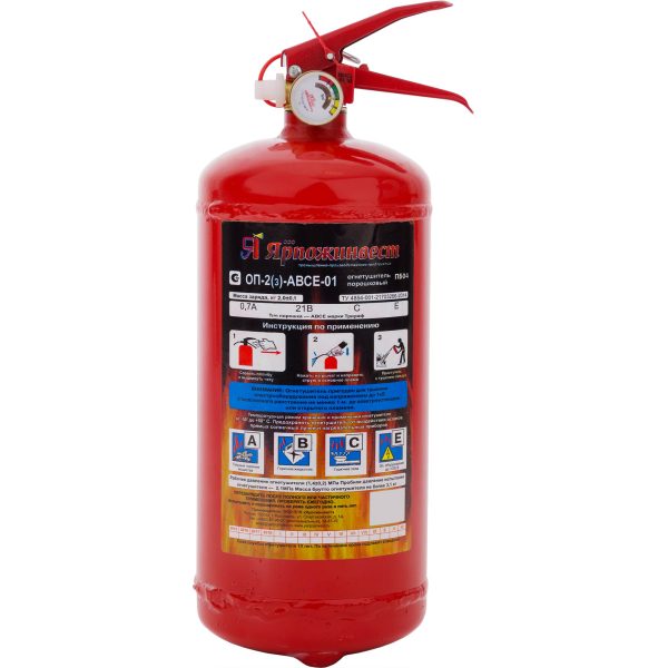 Огнетушитель порошковый ОП-2 - универсальный переносной огнетушитель закачного типа. Масса заряда огнетушащего вещества – 2 кг.
