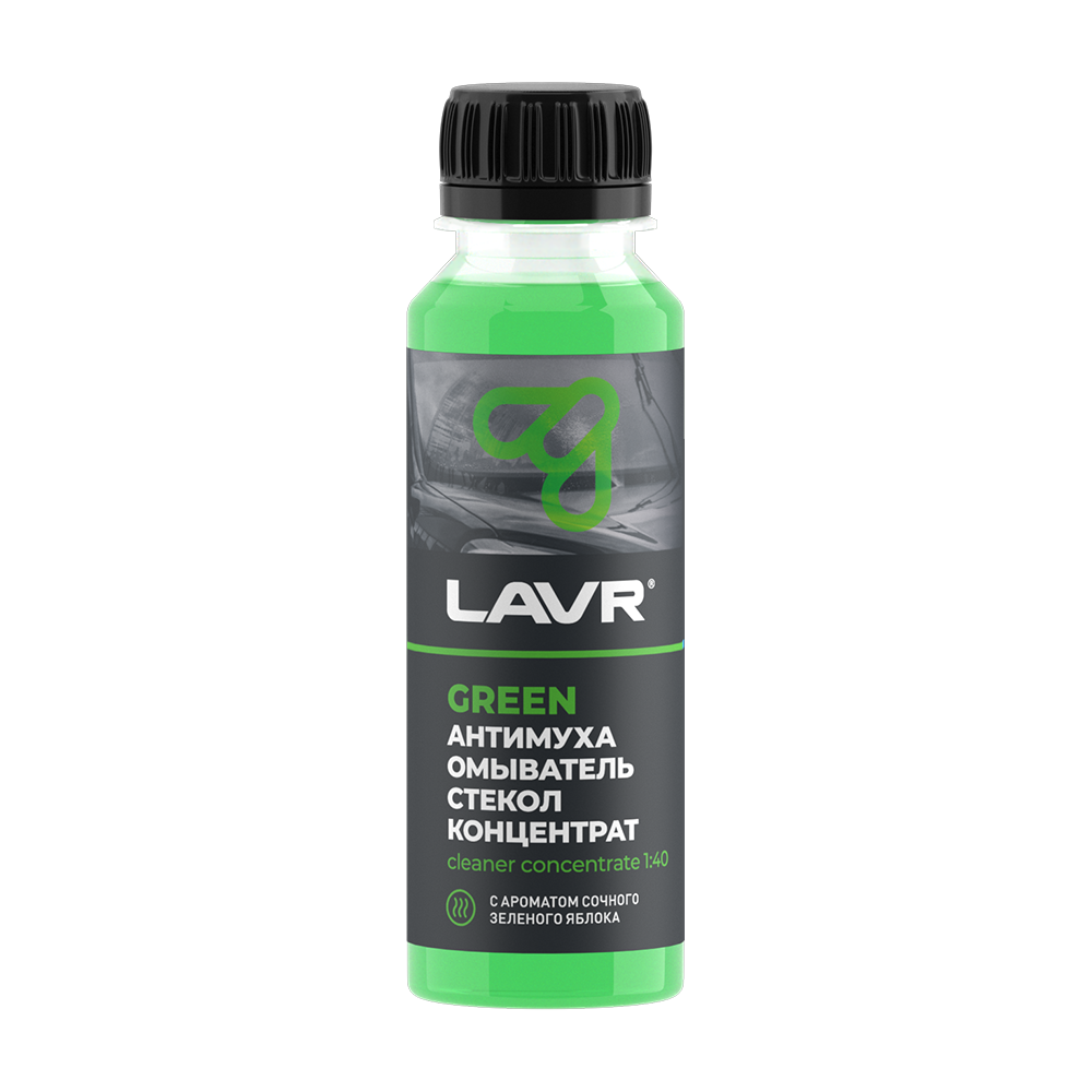 Омыватель стекол Антимуха Green LAVR – концентрат жидкости для очистки стекол и фар автомобиля. Средство с повышенной моющей способностью быстро удаляет все виды загрязнений. Экономично расходуется и обладает легким яблочным ароматом.